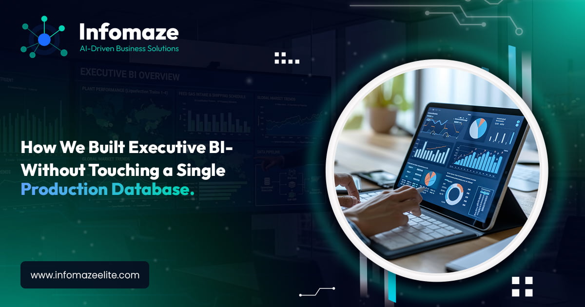 When Atlantic LNG came to us, the requirement was clear: executive and departmental dashboards pulling together operational and financial data from multiple systems. The challenge was equally clear: IT security policy did not permit direct connectivity from any BI tool to any production database.